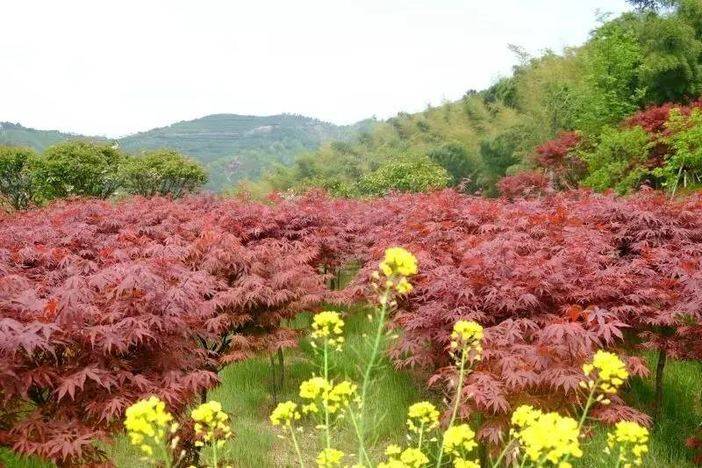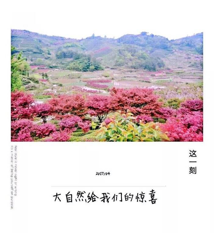 大岚山的花朵,漫山遍野,无论是随处可见的黄色野花,还是浪漫粉色的樱花,开得争奇斗艳。最惊喜的就是一大片一大片的红枫,给整座山,盖上了一块红毯,就像大自然的礼物。