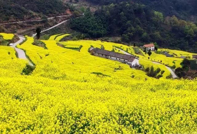 伴随着阳光和雨露的滋养,油菜花在胥岭如期绽放。