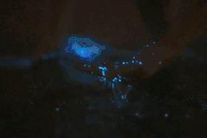 蓝眼泪是一种在海底生存的微生物,靠海水的一种能量生存,它的身体内有一种发光腺的奇特构造,在随着海浪被冲上岸时,就会产生浅蓝色的光。