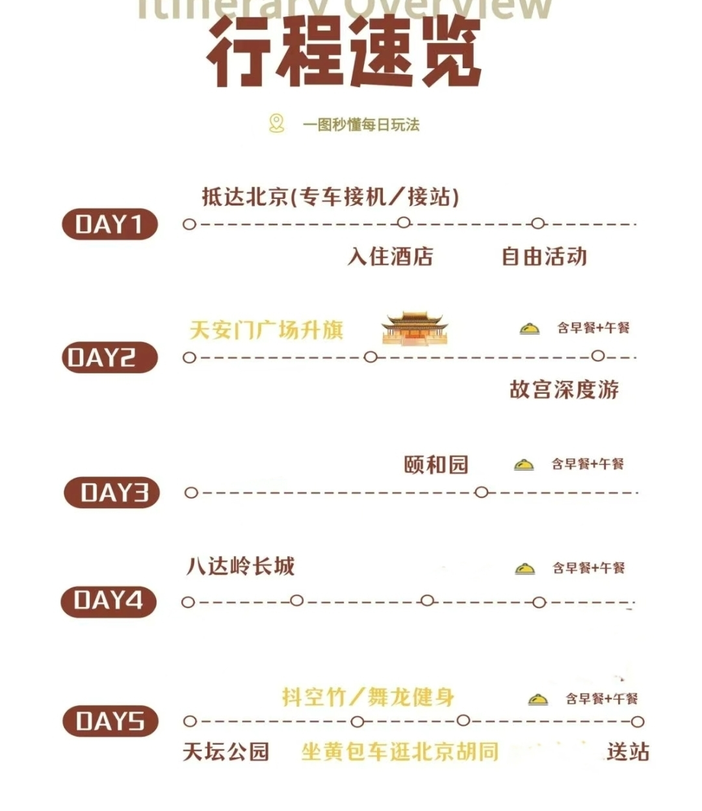 【用餐】4早(酒店双早);正餐4午餐(其中包含北京烤鸭80标,涮肉80标,炸酱面50标,正餐50标),晚餐自理丰俭由人